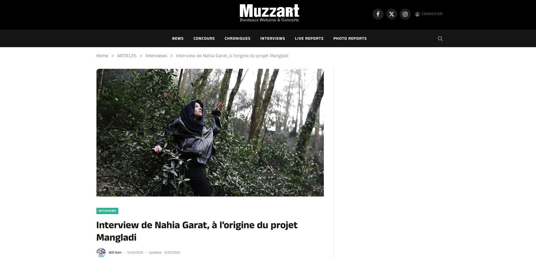 Création audiovisuelle conçue pour le projet Mangladi de Nahia Garat, issue d’un tournage basé sur du mouvement dansé intuitif et sensoriel. Entre images en couleur et noir et blanc, superpositions et glissements visuels, l’espace se construit dans l’instabilité, traversé par la confusion et l’insécurité. La forêt devient un décor ambivalent, à la fois accueillant et inquiétant, où le corps cherche son équilibre. À travers le mouvement, le son et l’image, Mangladi explore la vulnérabilité, les zones floues de l’intime et les tensions intérieures, dans une écriture sensible et immersive. Projet soutenu par le label Coeur sur Toi, en collaboration avec Matthieu Tcherbakoff, Nahia Garat et Tony Geranno.